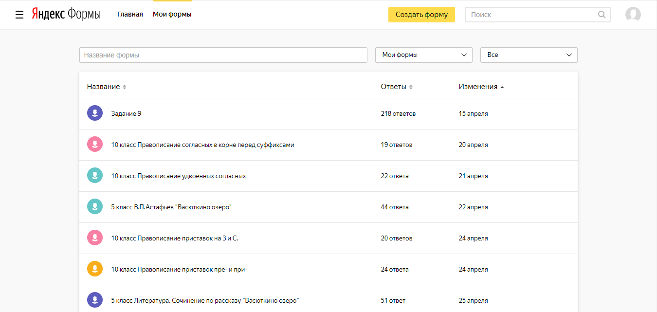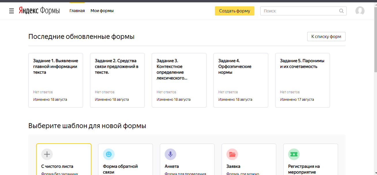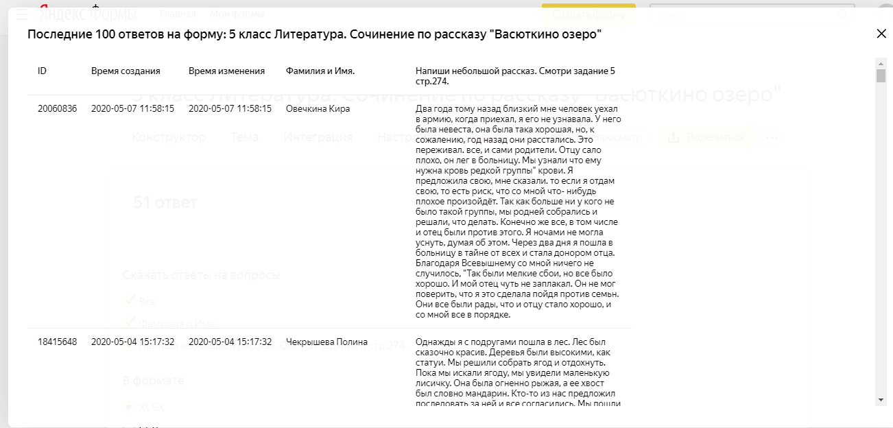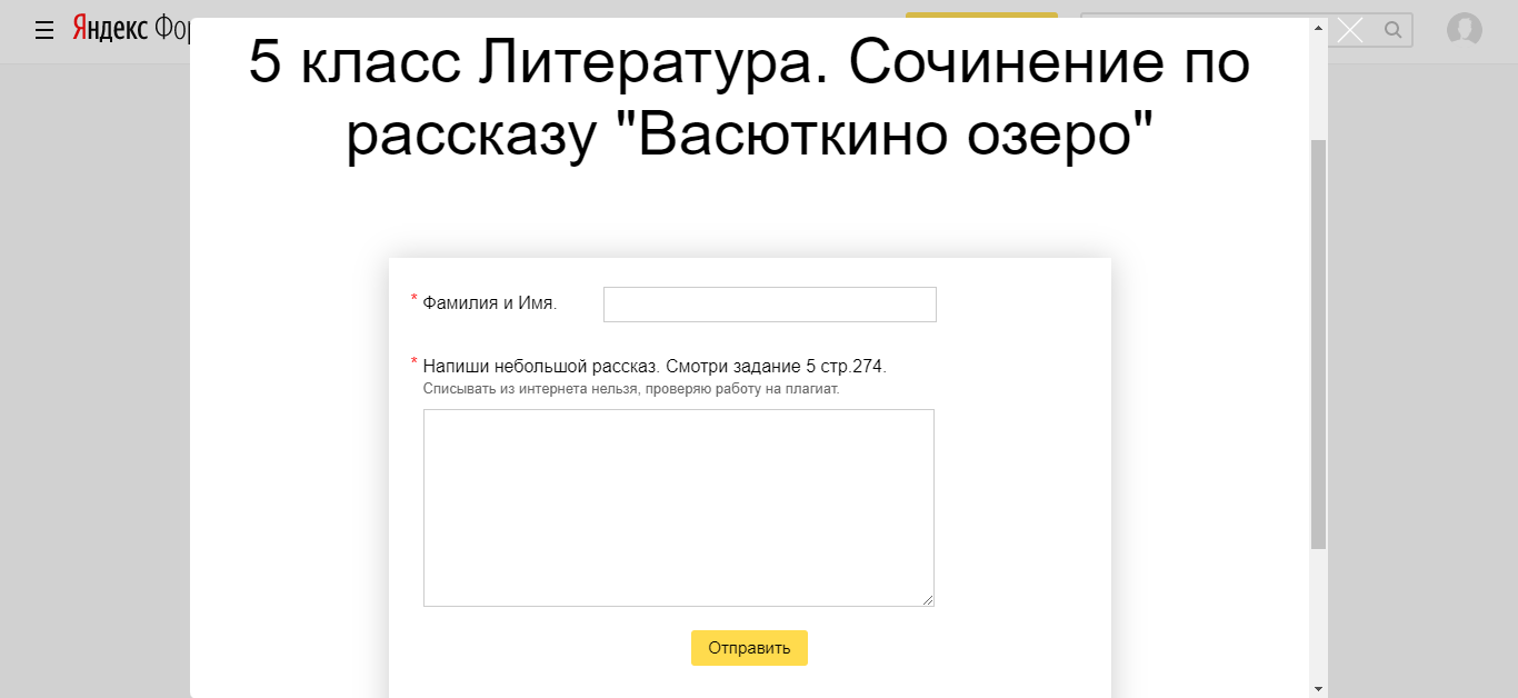 Использование Яндекс-форм при проверки объёмных работ (сочинений)